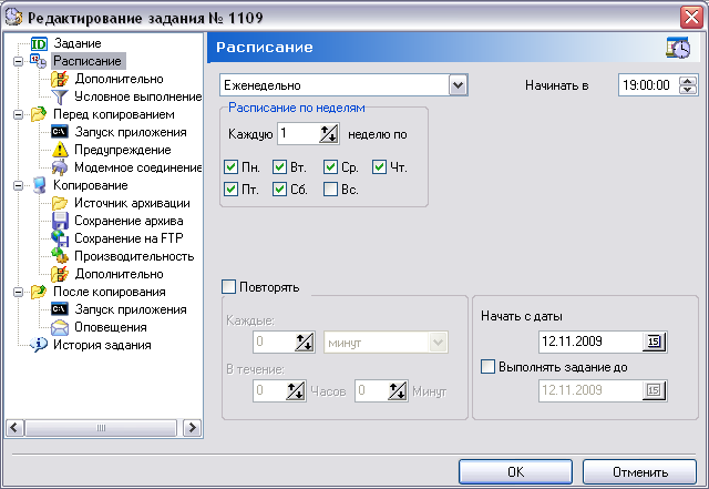После создания копии будет открыто окно конфигурации нового задания. Нам необходимо внести следующие изменения в новом задании: