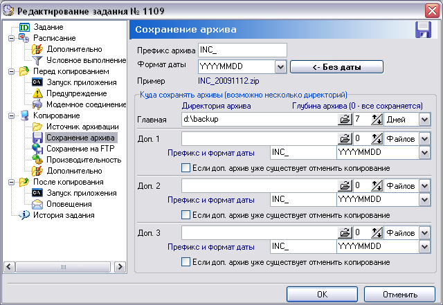 В принципе, для надежности можно организовать копирование полного архива в дополнительные директории на другом сервере и даже на FTP сервер в этом же задании.