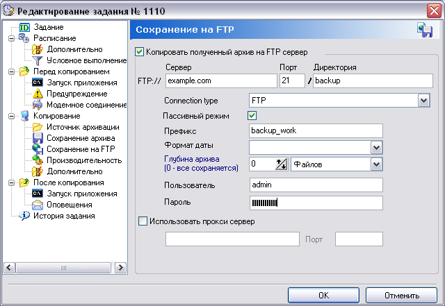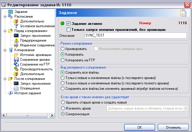Для задания режима синхронизации необходимо выбрать один из режимов копирования: Копирование или Копирование на FTP