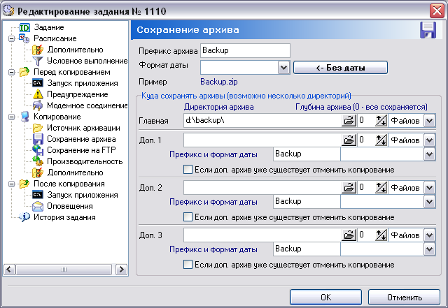 В режиме синхронизации APBackup создает архив и каждый раз при запуске задания поддерживает его актуальность, т.е. после каждого запуска задания архив является полной копией источника. Режим синхронизации обычно используется для архивов без формата даты т.к. для работы в этом режиме необходимо обновлять один и тот же.