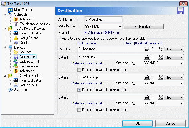 Местом сохранения архива может служить как локальный диск, CD-R, так и другой компьютер в локальной сети, а так же FTP сервер, причем все эти пункты назначения вы можете использовать одновременно, дублируя архив.